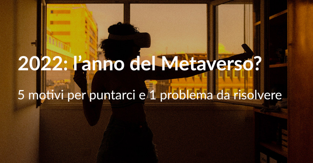 Il 2022 potrebbe essere quindi l’anno in cui il metaverso comincerà a prendere piede, con nuove importanti applicazioni che si affacceranno sul mercato. Se hai un business online, quindi, sarà fondamentale capire in fretta se è un ambito in cui vale la pena investire: in questo articolo ti parliamo di cinque motivi per scommetterci, ma anche di un problema da risolvere.