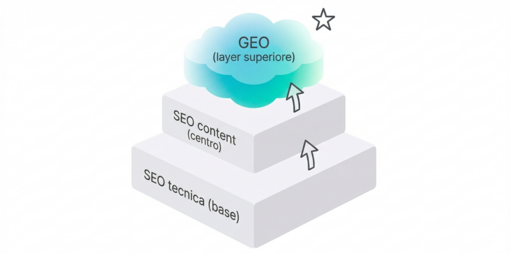 No. La GEO si aggiunge alla SEO, non la sostituisce. L’indicizzazione da parte di Google — prerequisito della SEO — è anche il prerequisito perché un contenuto venga considerato dai sistemi AI. Il traffico organico da link classici continua a esistere per molte query. La differenza è che ottimizzare solo per il ranking non è più sufficiente.