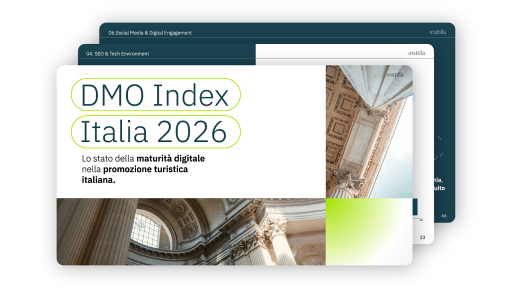 Il DMO Index Italia 2026, sviluppato da Instilla, è disponibile per il download su www.instilla.it/dmo. Il documento si rivolge alle Destination Management Organization, agli enti territoriali e agli operatori del turismo interessati a comprendere il livello di maturità digitale delle destinazioni italiane.